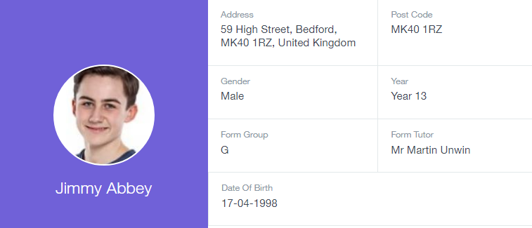 Here you can view the current address details the school has on file for your child. Other information on your child's year group, house and tutor are also available.