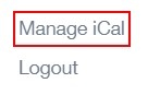 To manage your calendar, you need to go to the cog in the top left corner of the screen and click on it. Then, you need to click on Manage iCal.