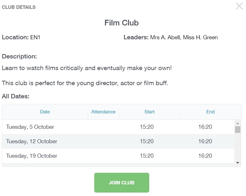 To join the club, parents should click on the Join Club button. It will now appear in your My Clubs tab.