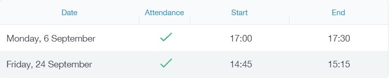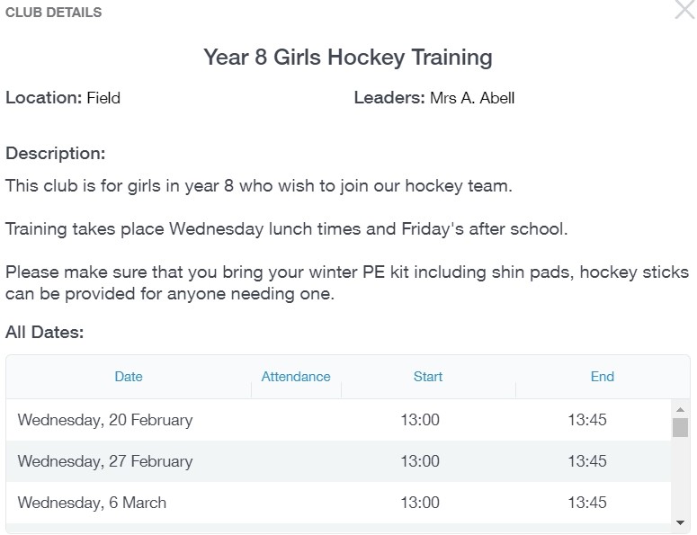 Parents can also view a child's attendance at a club. This appears after the fact and not during the session