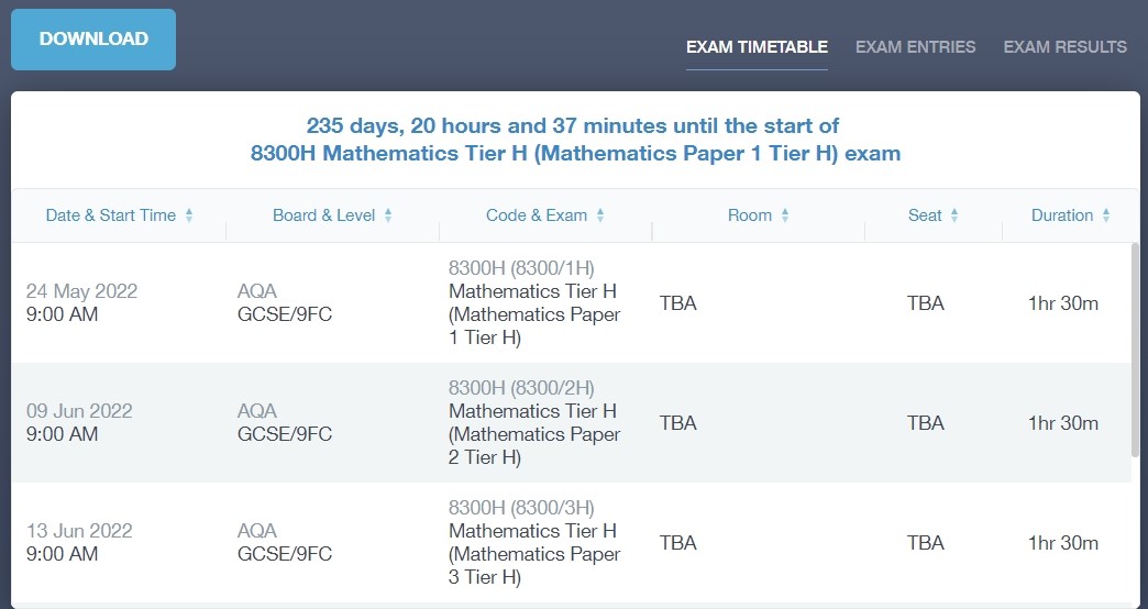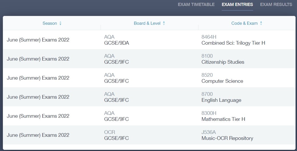 It includes the Exam Timetable along with the exam name and location. Your child also has access to this so they can keep track of upcoming exams themselves.