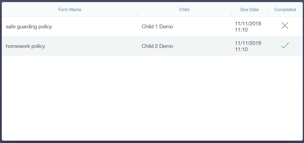 The forms screen is created as a list, providing details about your child/children, the due date and whether you have completed the form or not. You need to click on a form to fill it out.