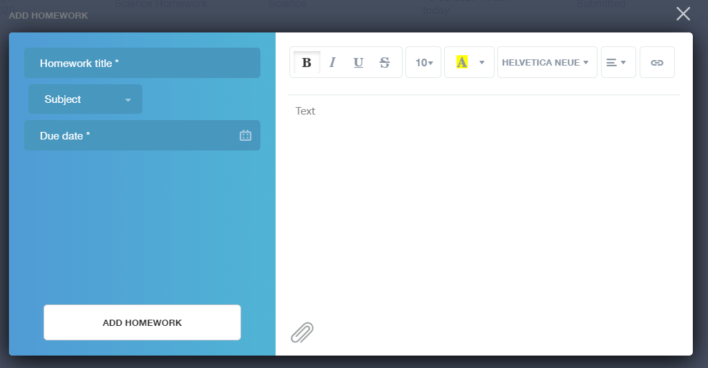 Please Note: Students can add their own homework using the Add Homework option. This will not be reviewed by the teacher but can be used to help students create a study plan, self-assessments, etc...