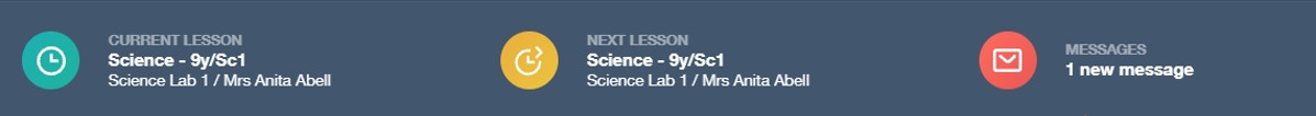 This bar shows you what lesson your child is currently in, along with the next lesson in their timetable. The messages button will let you know if you have any unread messages form the school.