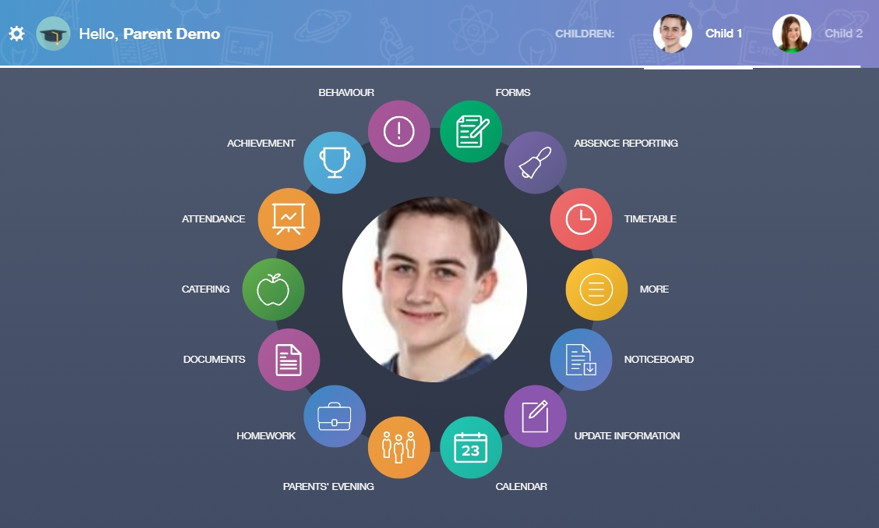 Once logged in, you will see the main screen in Edulink One. The information held in your account relates to your child/children. You will be able to navigate through the different sections of Edulink One by clicking on the icons, e.g. to view your child's attendance, click the Attendance icon.