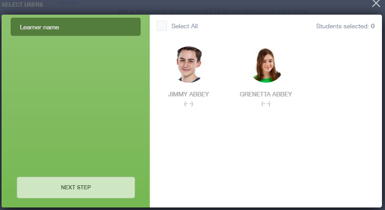 Next you will have to select your child/children. Once selected click the next step button.