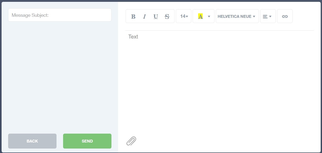 Type your message subject and text. You can customise your text using the toolbar at the top and you can add attachments using the paperclip icon at the bottom of the window. When you are finished, click the Send button