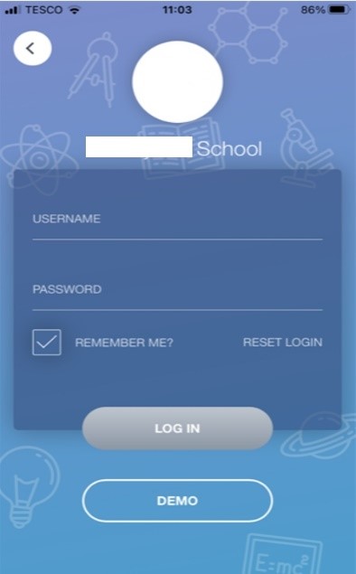This is followed by the USERNAME and PASSWORD screen where you need to enter the login details your school has sent you.
