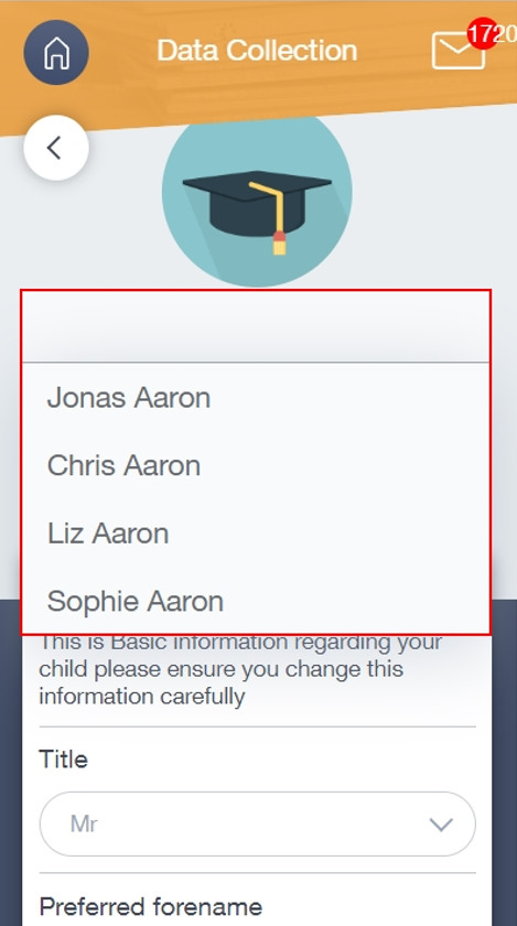 If you have more than one student in school, it's easy to switch between each one. Just select the child you would like to view in the top right hand corner. If you can't see all of your children that attend then same school, please contact your school