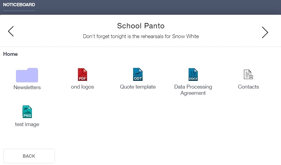 The noticeboard is where parents can see news and upcoming announcements from the school. Schools can upload newsletters, documents and other useful information.